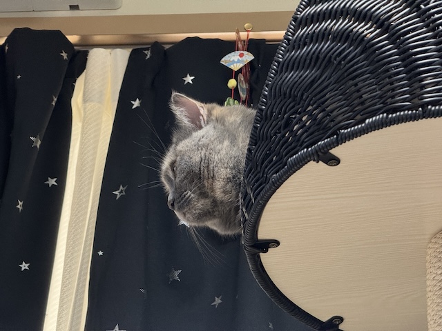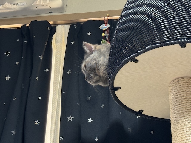 조금전에 줄로 된 냥이 장난감이 지나갔습니다.