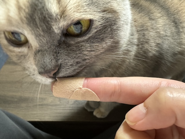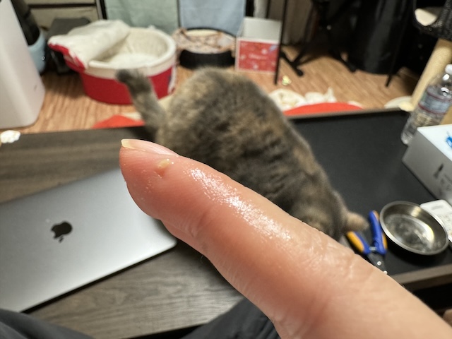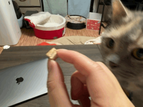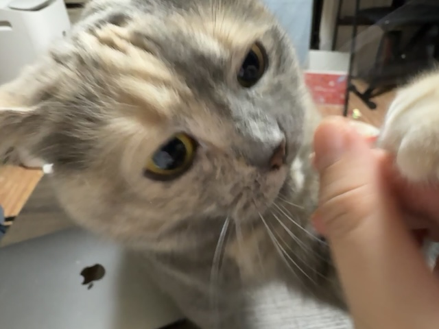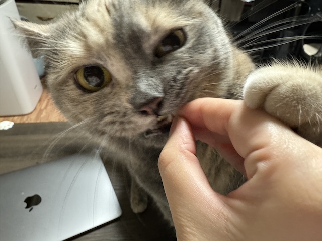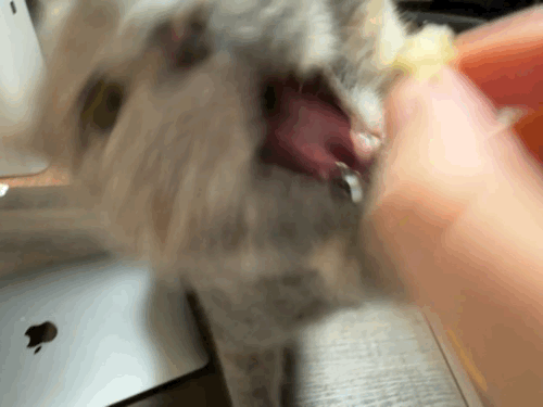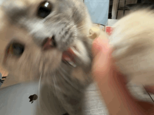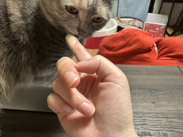 물었는데 간식이 안씹혀서 집사의 손꾸락을 재대로 씹으셨습니다.