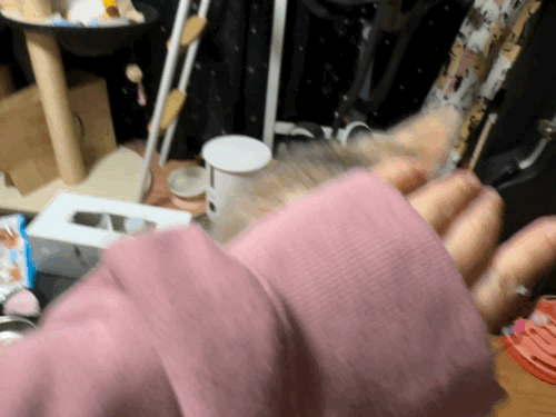 간식 없이 팔만 올린 상태에서 쓰담 하려고 했다가