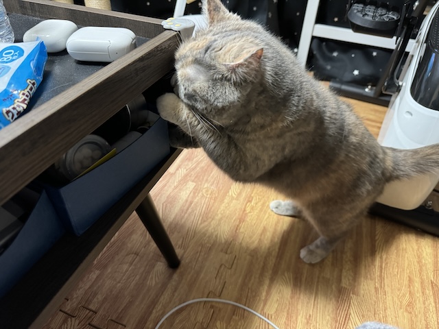간식이 들어있는 박스를 뒤지는 중이십니다