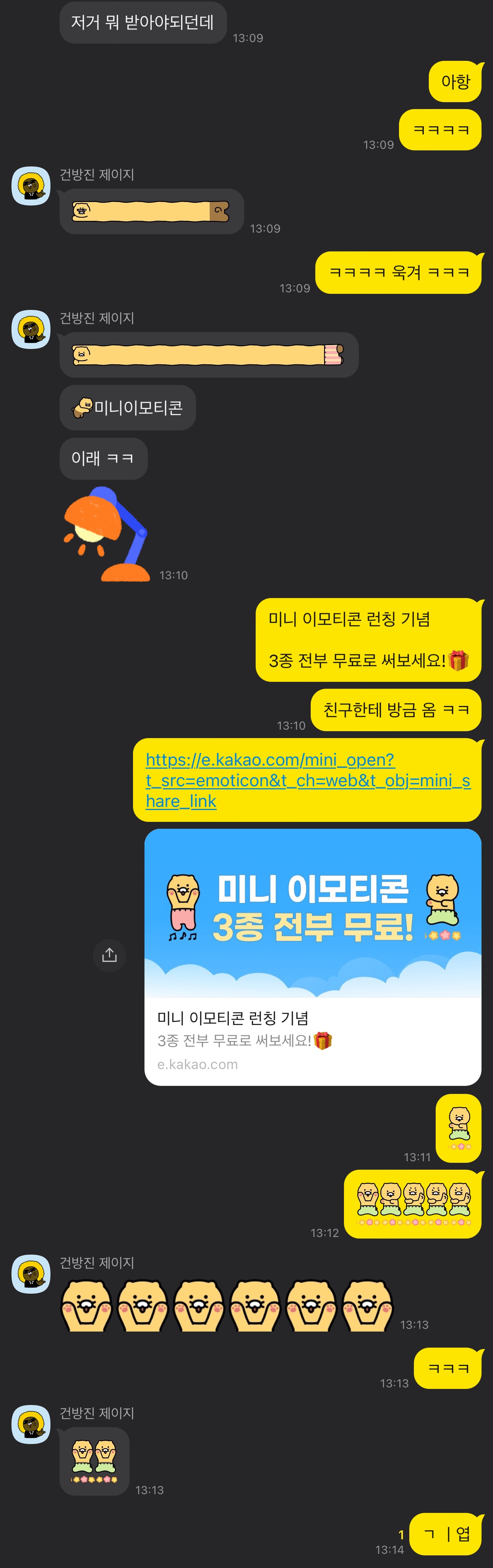 미니티콘 오픈채팅방이 생겨서 ㅋㅋㅋ