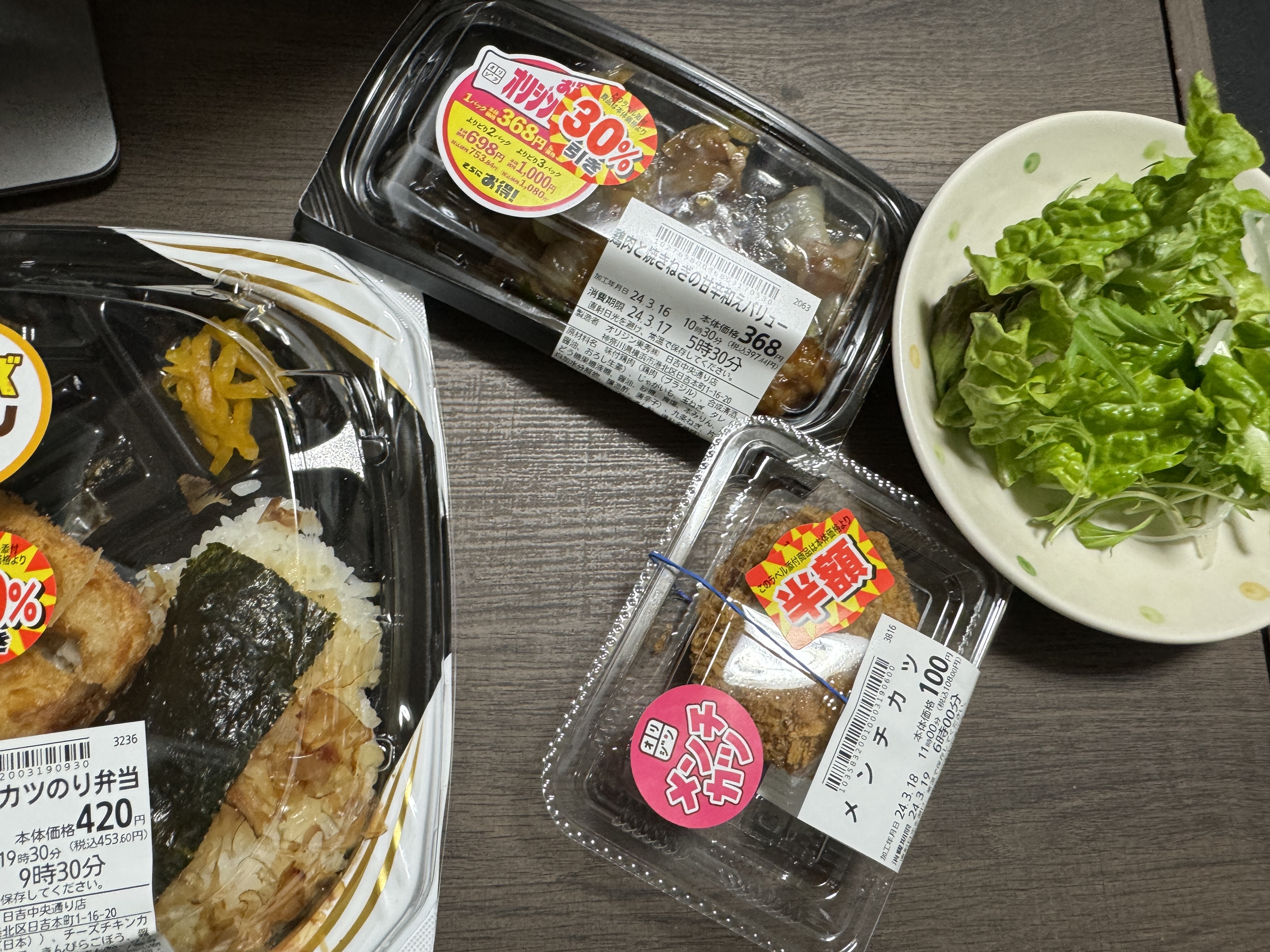 이날 산 도시락 + 멘치카츠는 400엔도 안했다능! 우앙