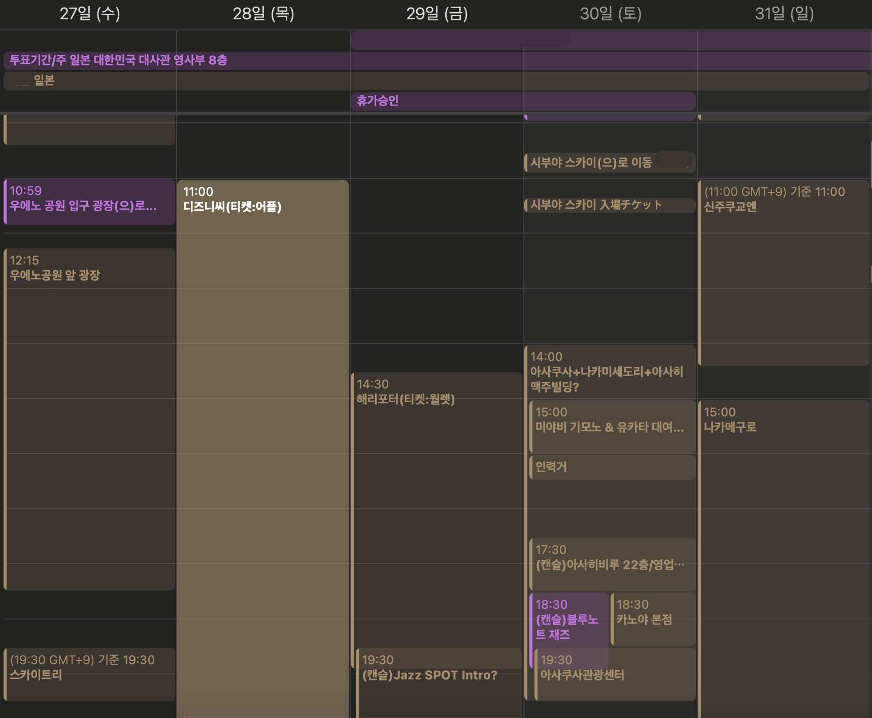 그나마 실제로 와서 이것저것 캔슬해서 요런 스케줄 으허허 와 ..
