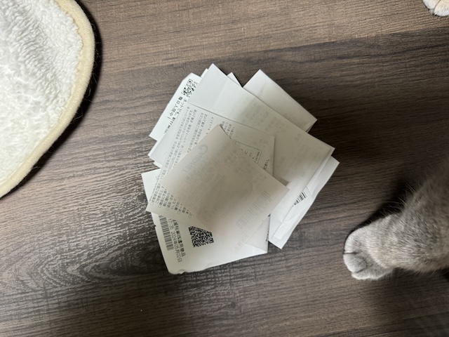 그리고 잔뜩 생긴 영수증 들.. 흐린눈 ㅋㅋ