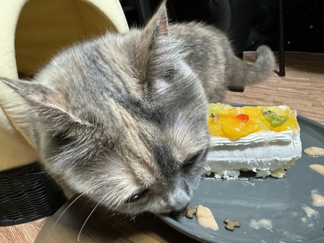 고양이 생일 케익과 츄르와 율무 최애간식 데코