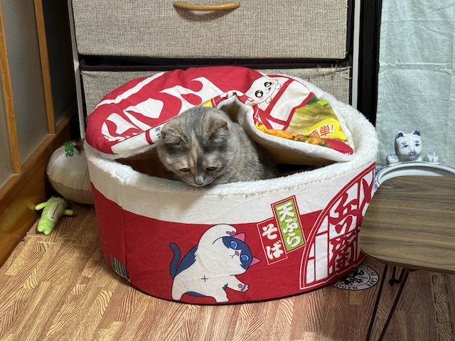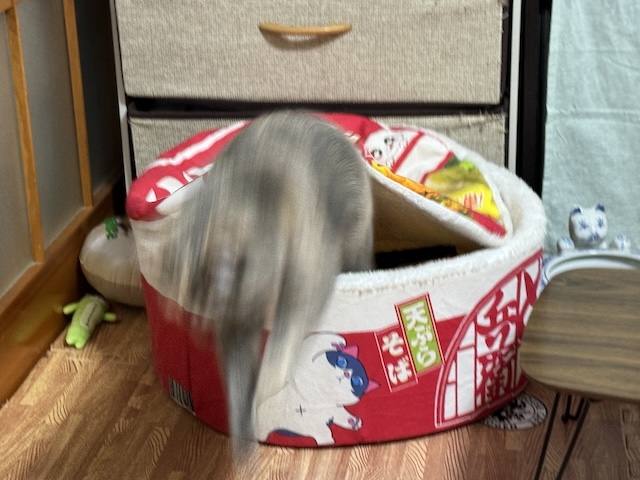 돈부리 안에서 자다가 바스락 소리에 나오신 율무님
