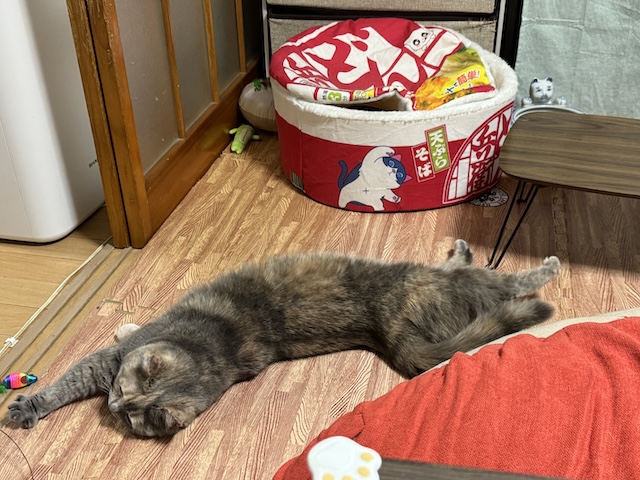 테이블에 올라와서 귀엽게 누워계시는 중 ㅋㅋ