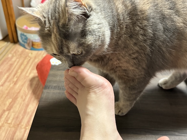 올라와서 자연스럽게 집사의 발 냄새를 맡..