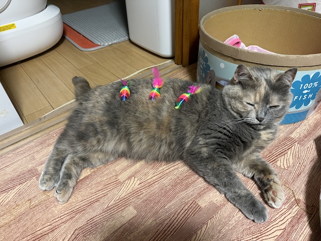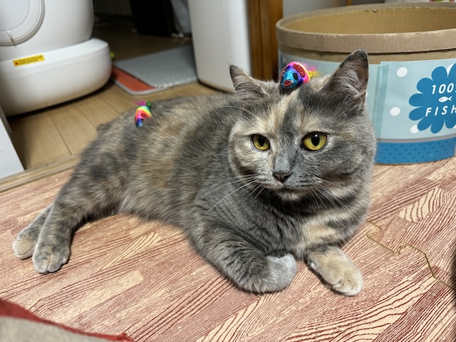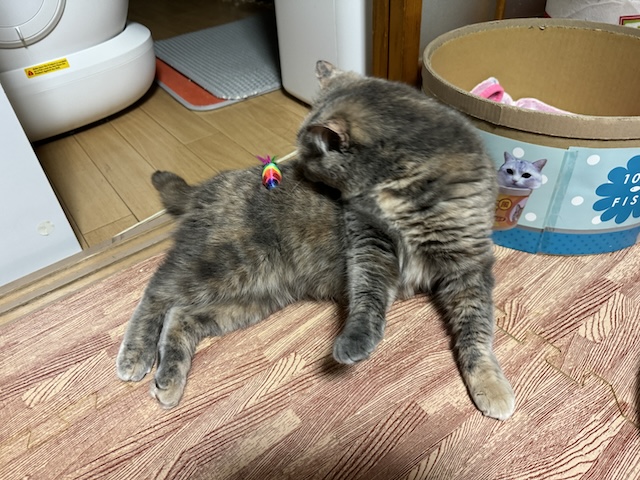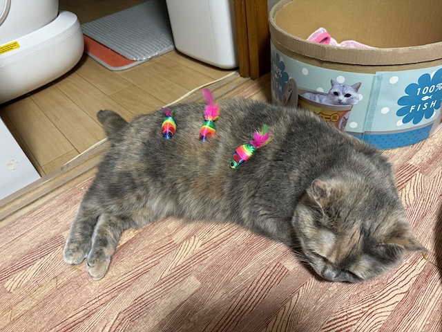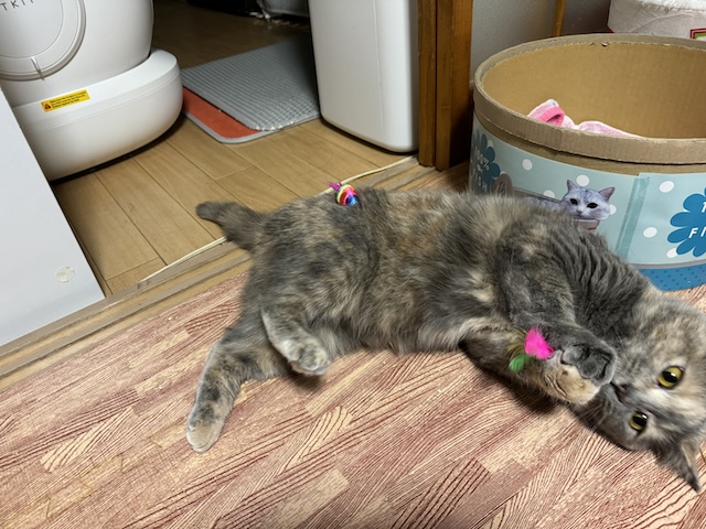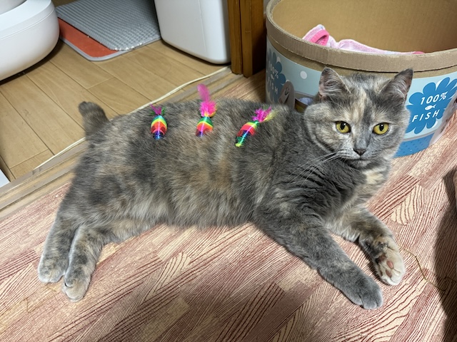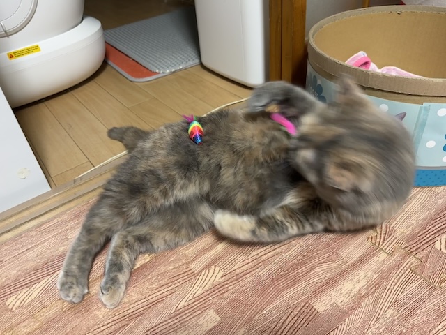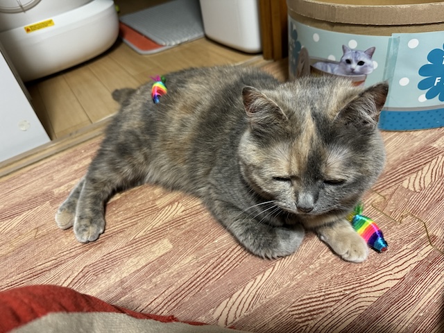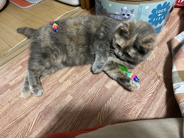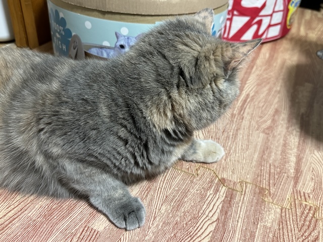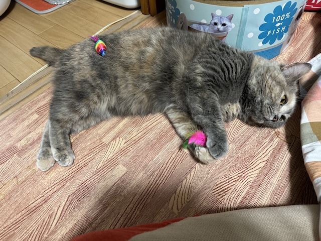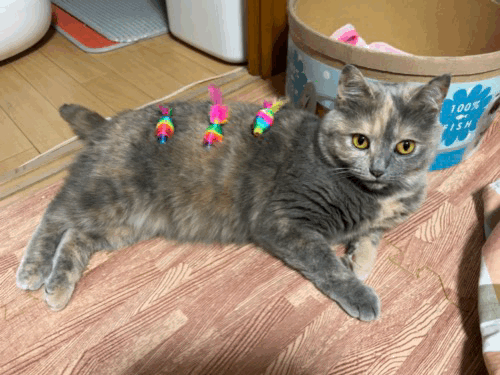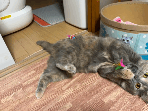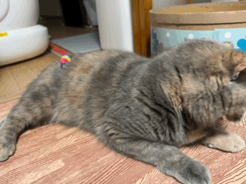 뒹굴거리는 율무 근처에 쥐돌이 삼형제가 있길래 집사의 장난 시작