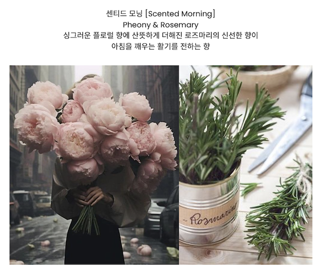 총 4가지 향이 있는데, 센티드 모닝은 플로럴 + 로즈마리 향인 듯