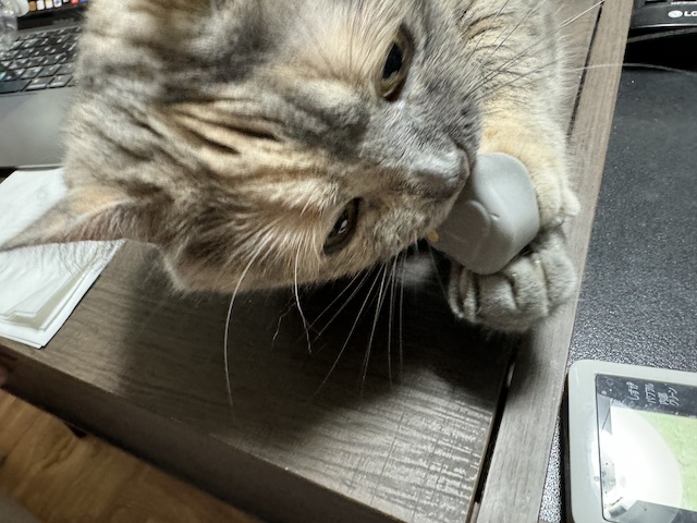 사실 고무 재질이라 율무가 씹어먹고 싶어 하는 재질입니다