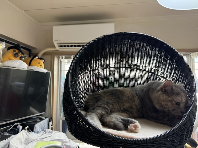 제일 좋은 자리 선점한 율무. 더워서 에어컨을 틀었더니 선선한 자리에 자리를 잡으심