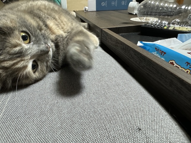 발톱 걸려서 소파 천이 들렸는데?