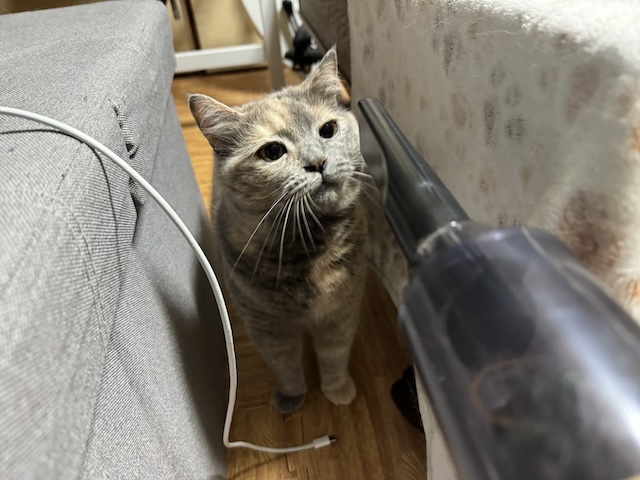 오 청소기 노즐 가까운데 안 도망가네?