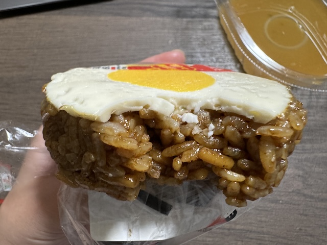 계란과 밥 사이에 마요네즈가 들어가 있습니다.