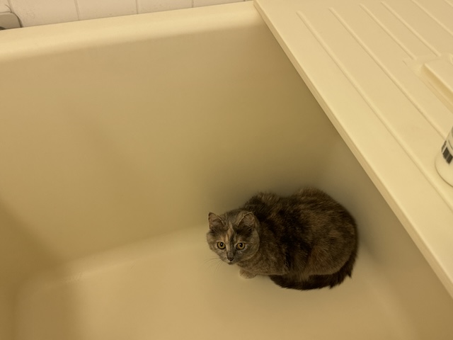 요즘 율무가 욕실 문만 열리면 호다닥 따라 들어와서 여기에 자리를 잡네요
