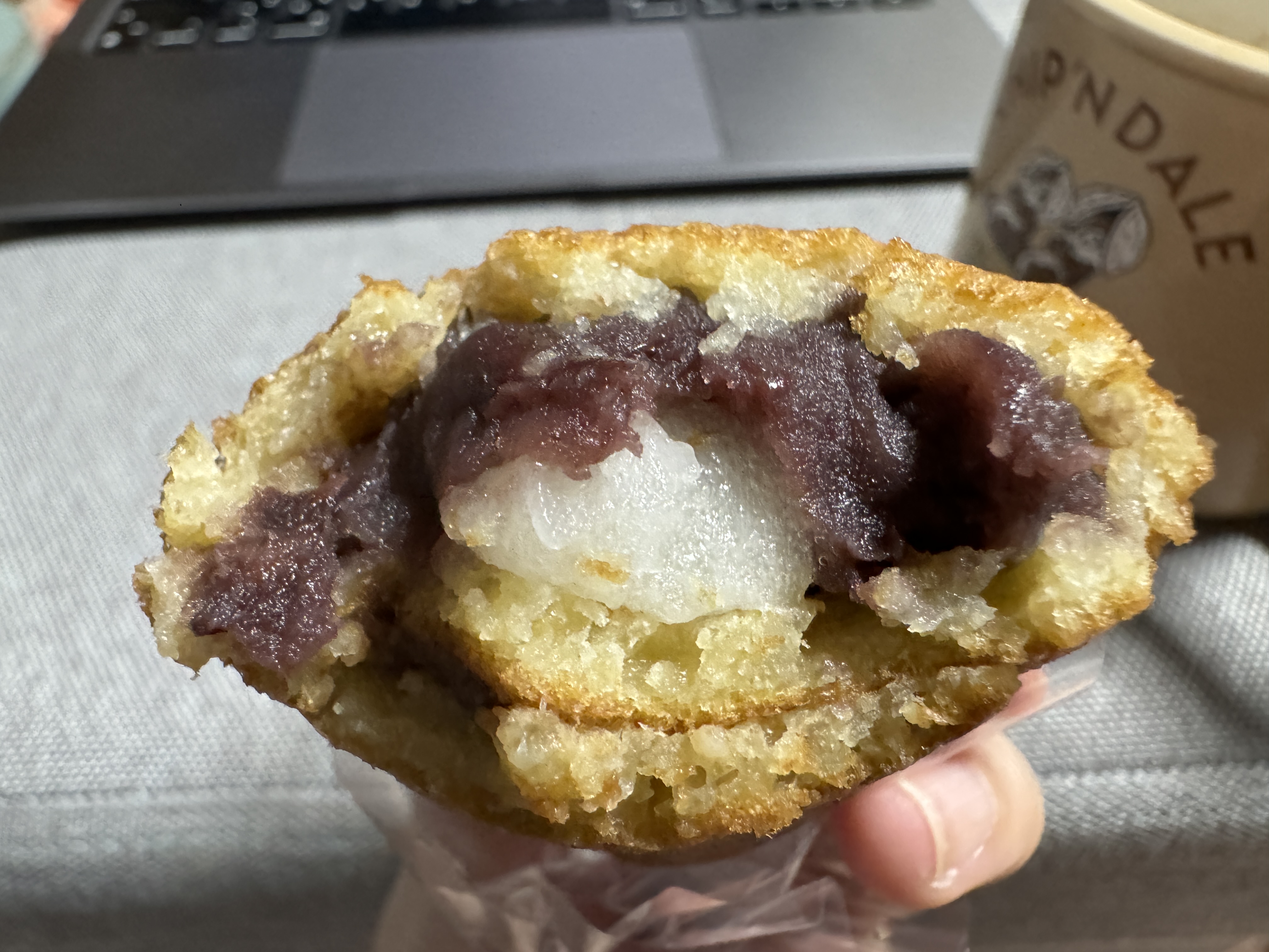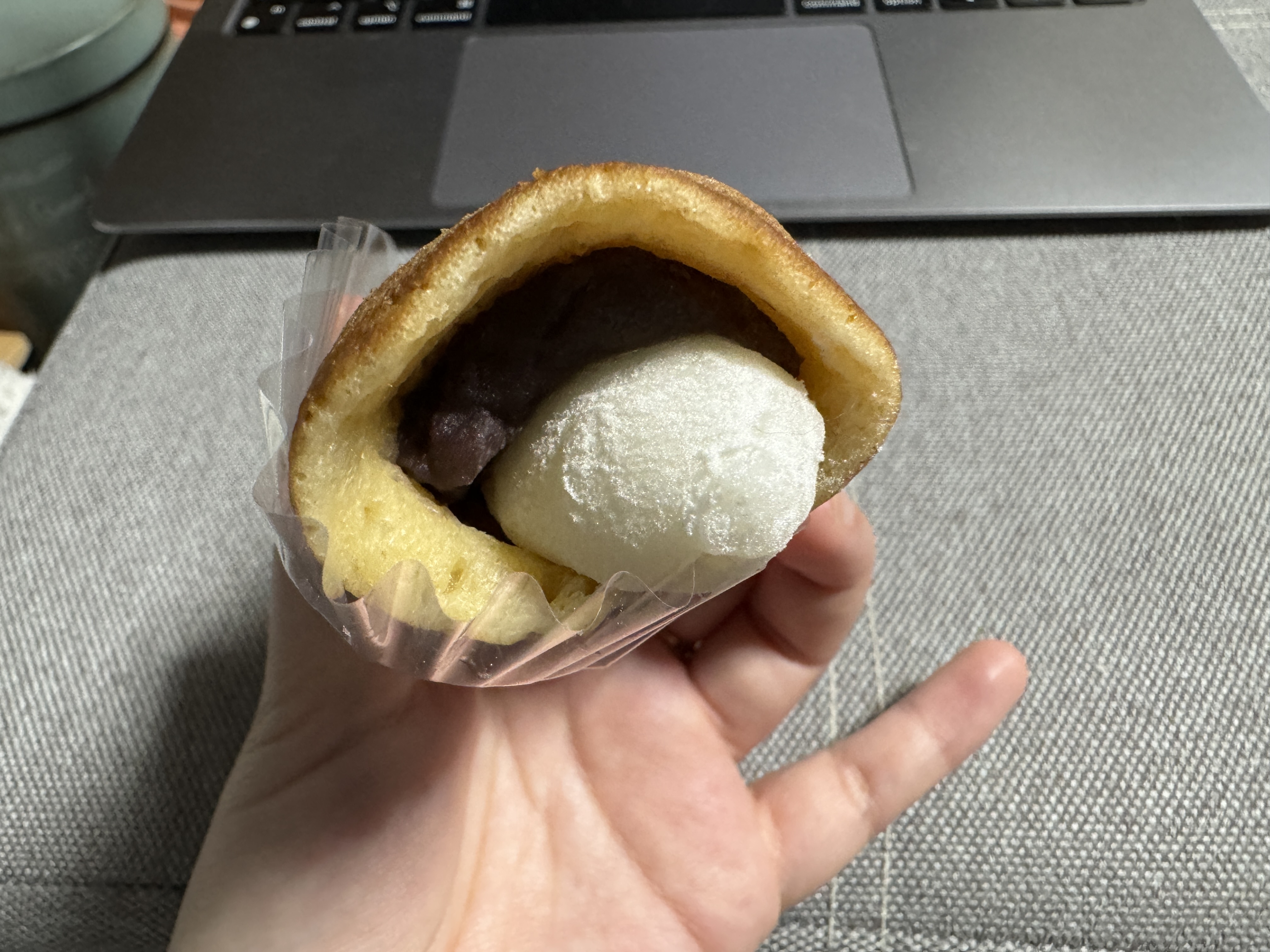 도라야키 같은 생지 안에 팥앙꼬랑 떡을 넣어 돌돌 말아버린 아이!