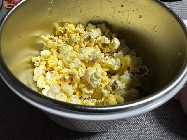 그리고 가져온 팝콘! 손으로 가져다 먹다가 걍 그릇째 들고 마셨습니다.