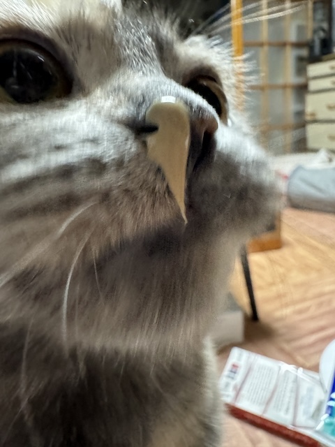 진정 시킬라고 일단 웜업으로 코에 발라 줍니다.
