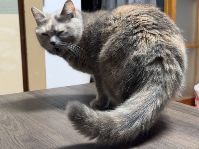 가끔 율무가 저렇게 테이블을 핥고는 입을 벌리고