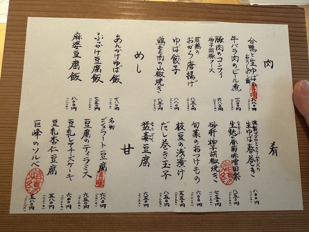 일반 메뉴도 놓여져 있습니다. 마파두부밥이 있네?? 유바 교자는 뭐여... 워우..?