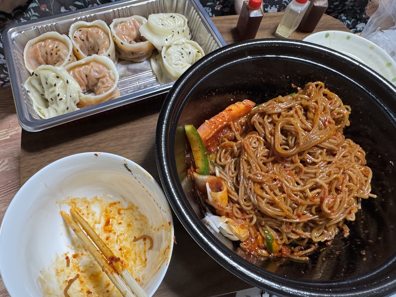 배달로 시킨 김밥도 비냉&만두도 성공적!! 배달 가능한 한국 가게들이 늘어서 너무 좋습니다.