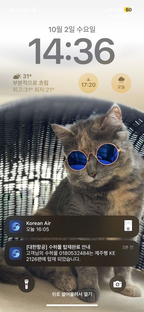 오앙 무사히 수화물이 탑재된것도 알람이 오는군요 +_+