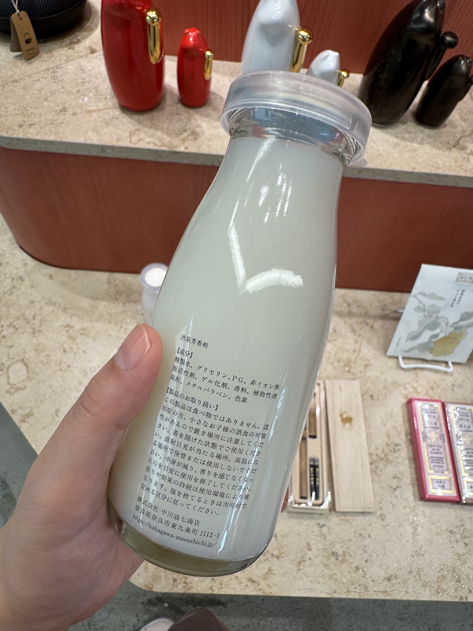 우유병인 척을 하고 있는 방향제. 구경하는 재미가 있습니다.