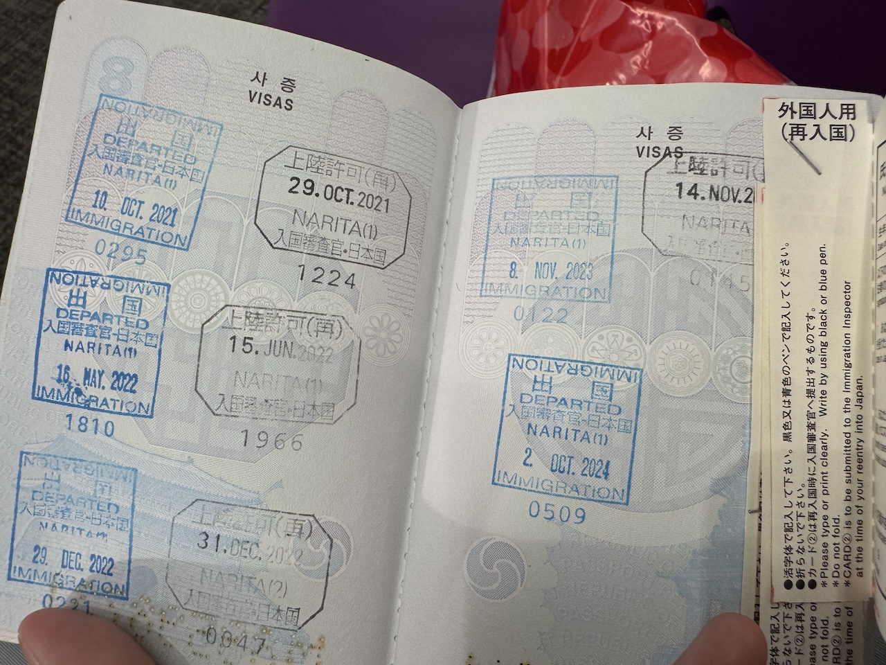 22년도에 2번 한국 갔었군요. 나머지는 한번씩-