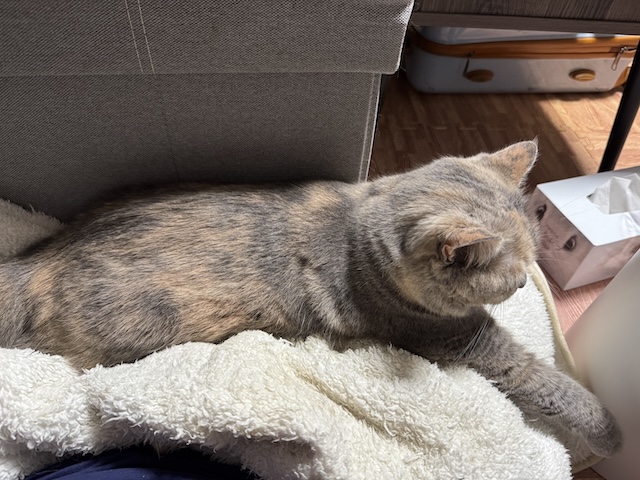 아직 정리 안한 캐리여 옆에서 숙면중인 율무