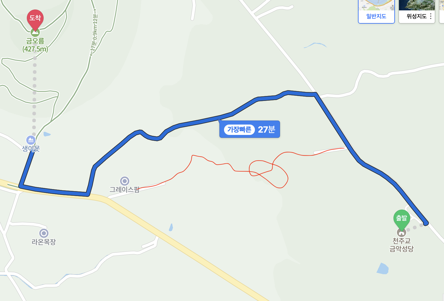 조금만 더 가서 추천경로대로 갔으면 큰길로 갔을텐데 ㅎㅎ