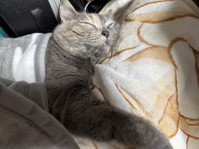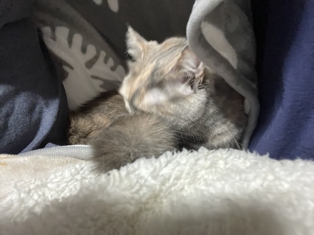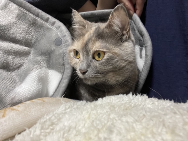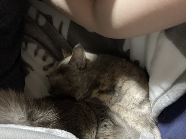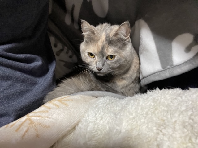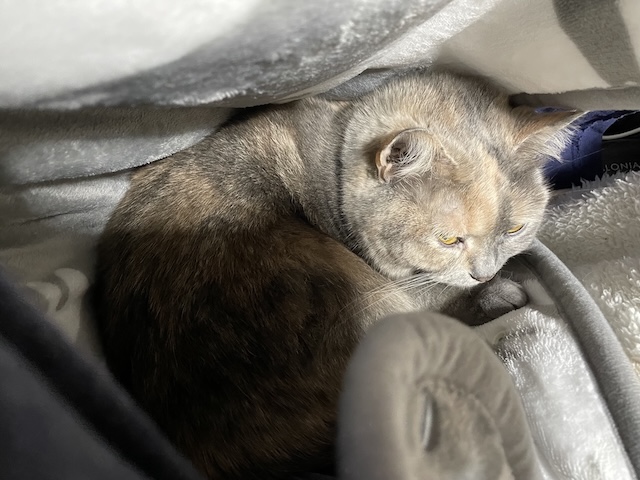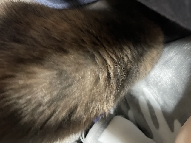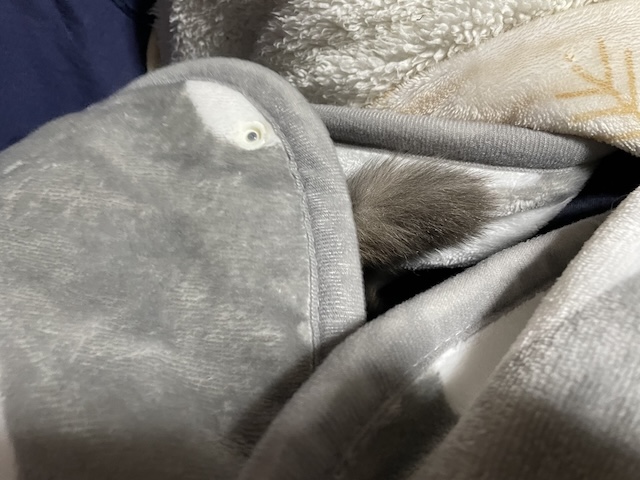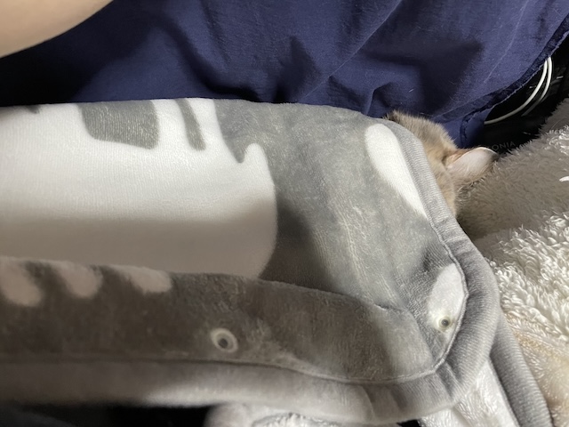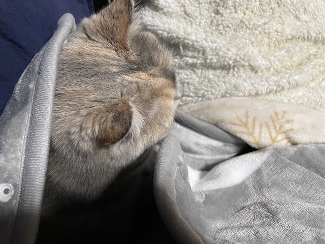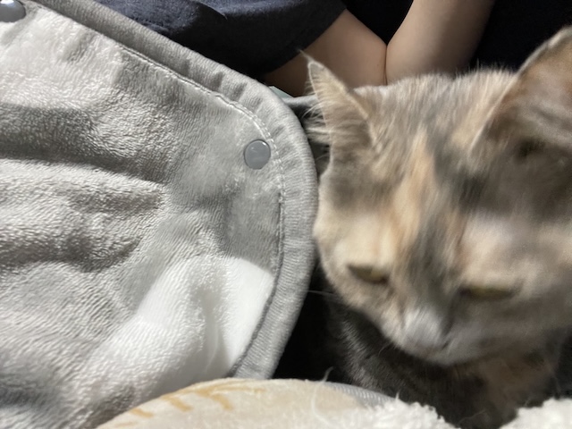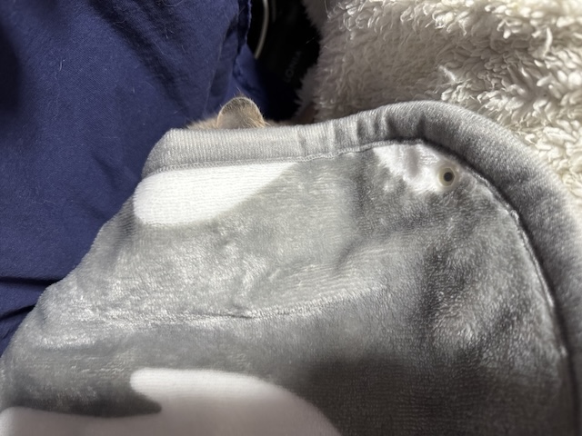 뒤늦게 소매 만드는 방법을 알게되서, 소매 부분을 고정했더니 율무가 발견한 빈틈!