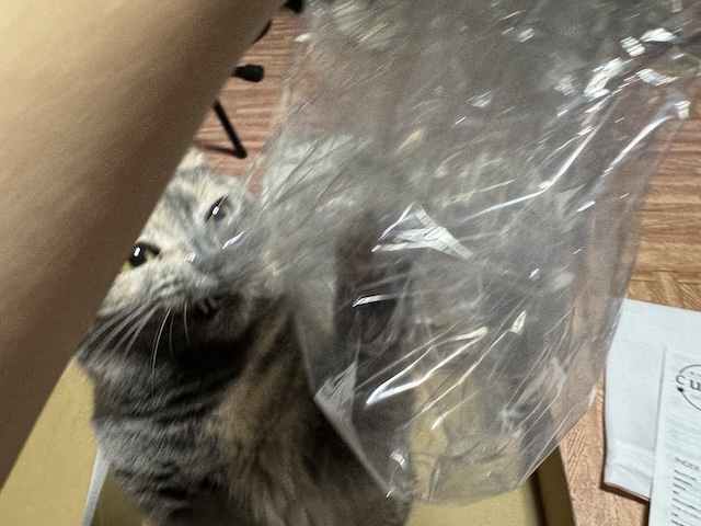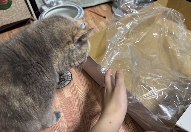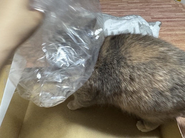 박스 안에서 비닐 노리기
