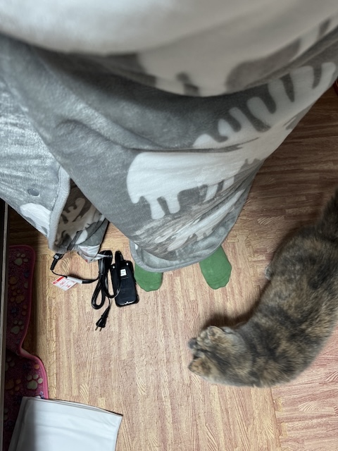 앉으면 다리 부분이 비어서 평소에 쓰는 무릎 담뇨를 폈습니다.
