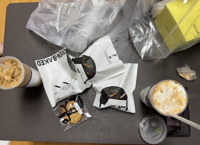 폭우를 뚫고 선물 증정을 주러 갔던 친구네 집에서 디저트를 시켰습니다.