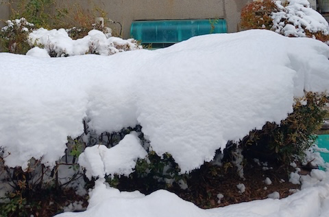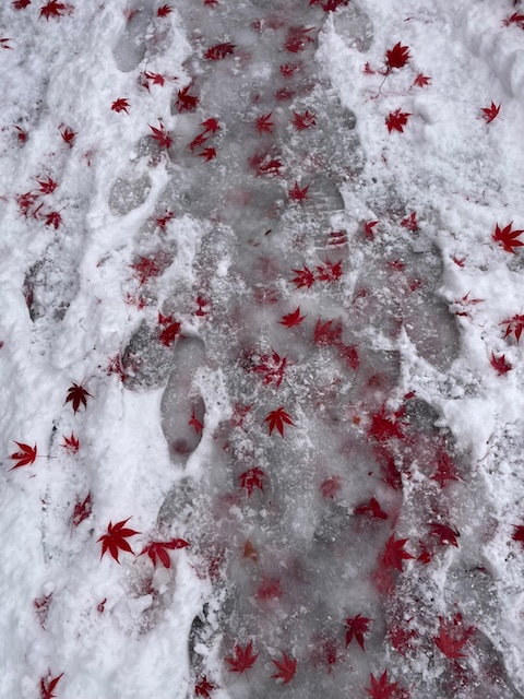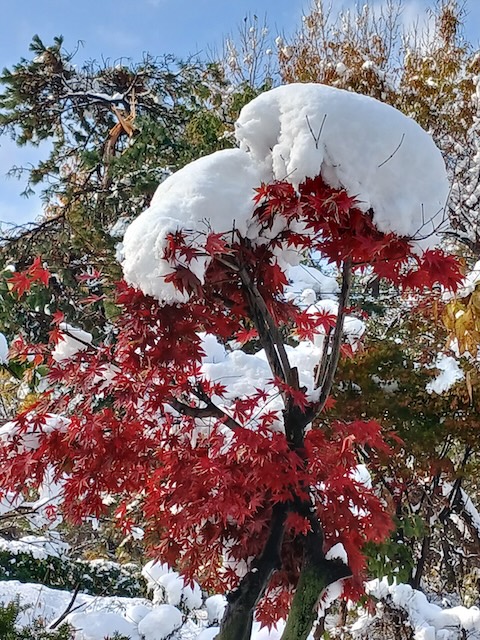 단풍 위에 쌓엔 눈.