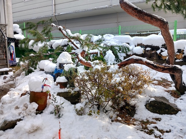 집쪽도 단풍 위에 눈이.. 의외로 버티고 있는 가지들 ㅠㅠ