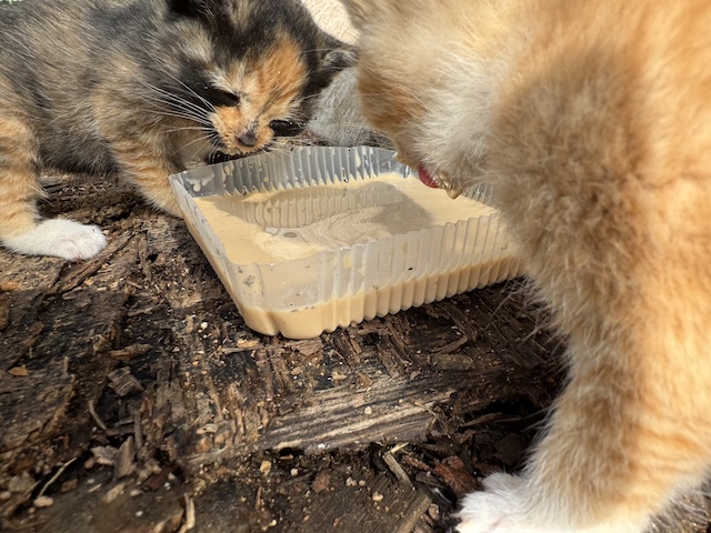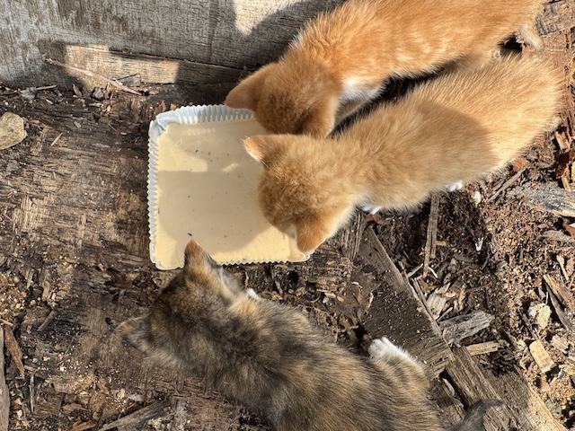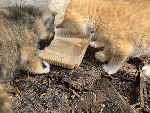 아침밥을 먹고 새끼냥이들 보러 나왔습니다.