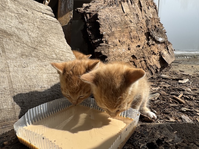 맛있게 우유 드링킹 중인 치즈냥이들