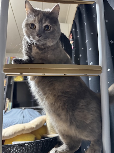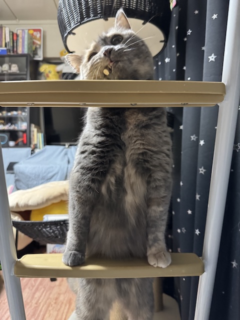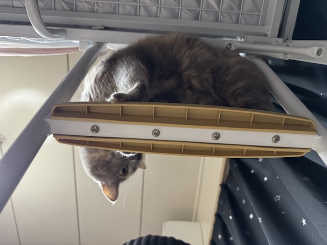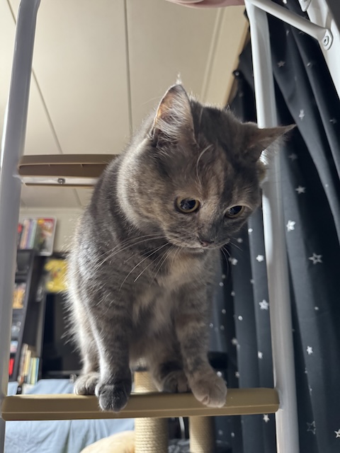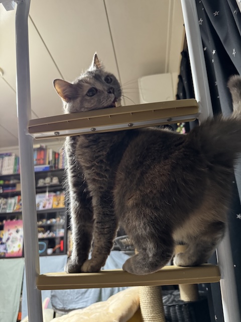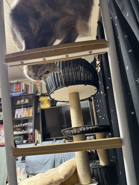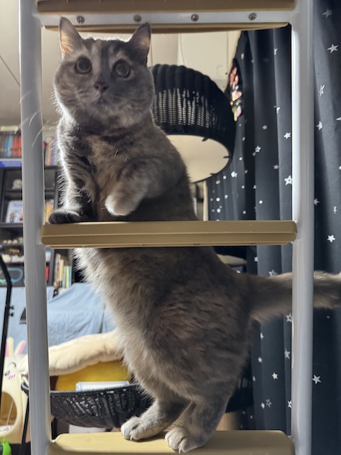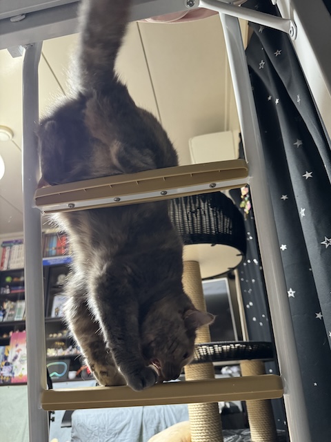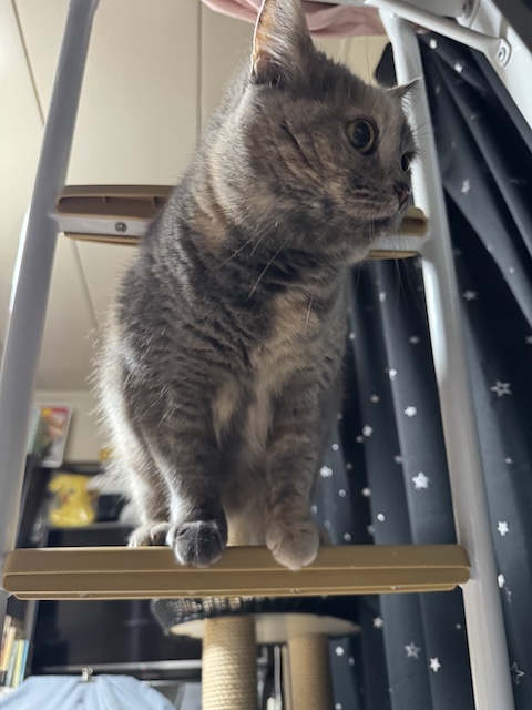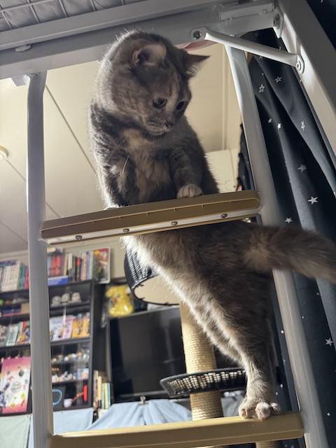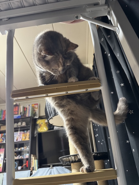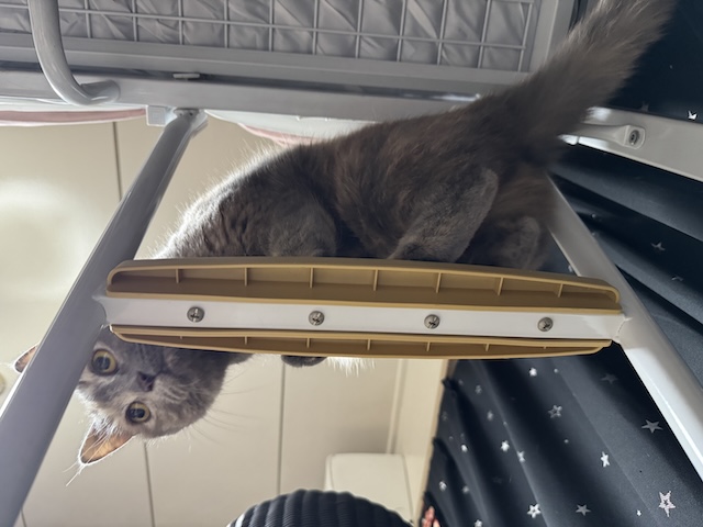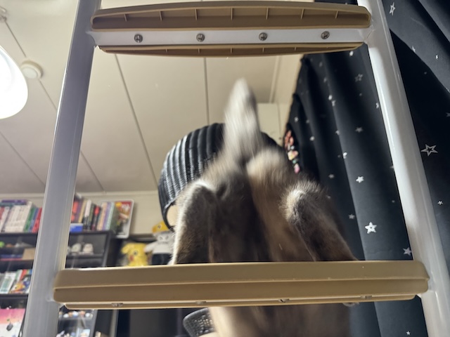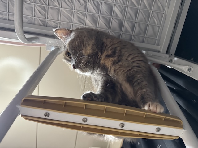 얼마전부터 침대 계단 위에 올라가서 간식을 먹고 있는 율무-