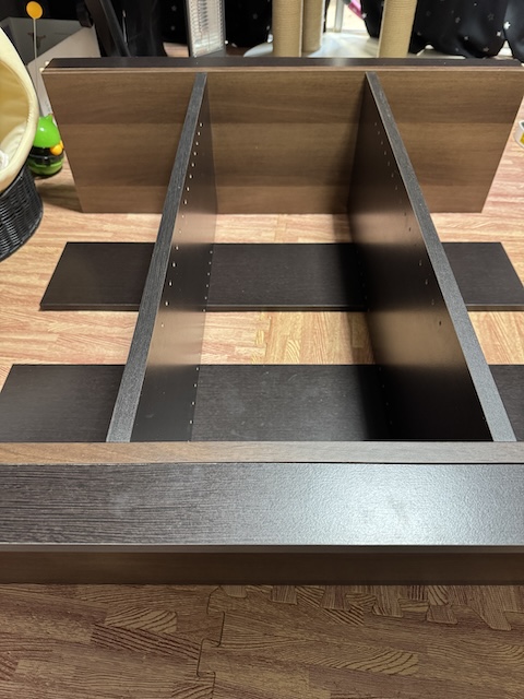 사이즈는 제대로 안보고 사서 앞뒤쪽 길이가 전에 쓰던 박스 수납장 보다는 짧아서