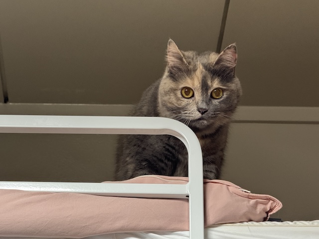 복도 우다다 왕복하고 와서 침대 위까지 달려가심