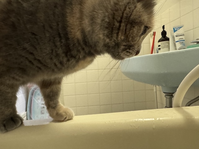 눈이 땡그래져서 욕조 안의 물만 쳐다보는 중