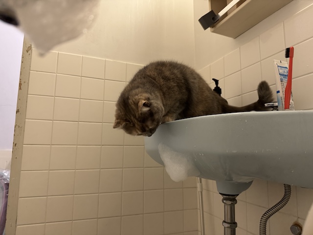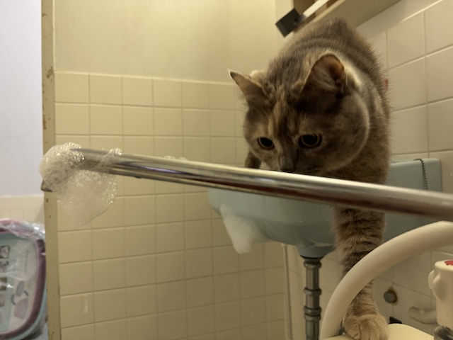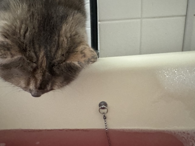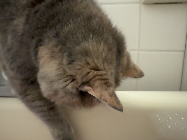 애간장이 타는지 할짝할짝 (욕조 물 마신거 아닙니다)