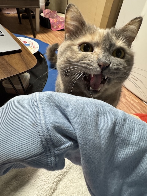 초반에는 주로 악! 악! 그래도 안 주면 기죽어서 음소거로 울어댑니다