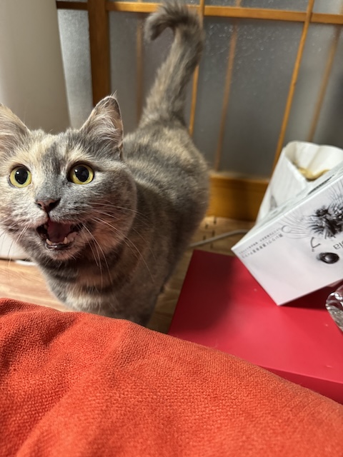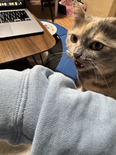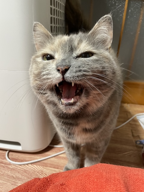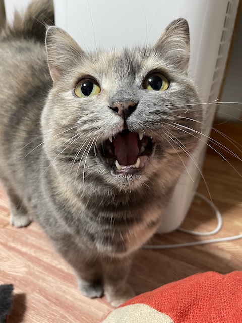 악! 악! 아악~ 귀엽게 우는 율무가 간식을 얻습니다 :)
