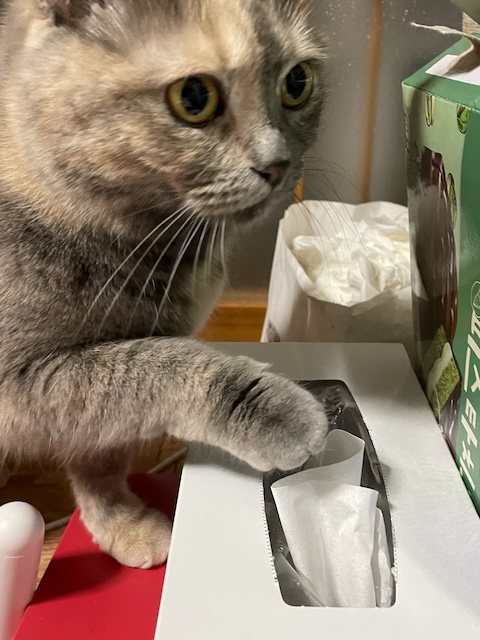 다른 필살기 진상짓 할꺼야... (안 말리면 곽티슈 비닐 뜯습니다. )