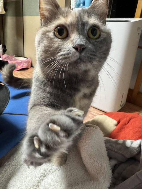 간식을 조르는 율무. 필살기 솜방맹이 들기