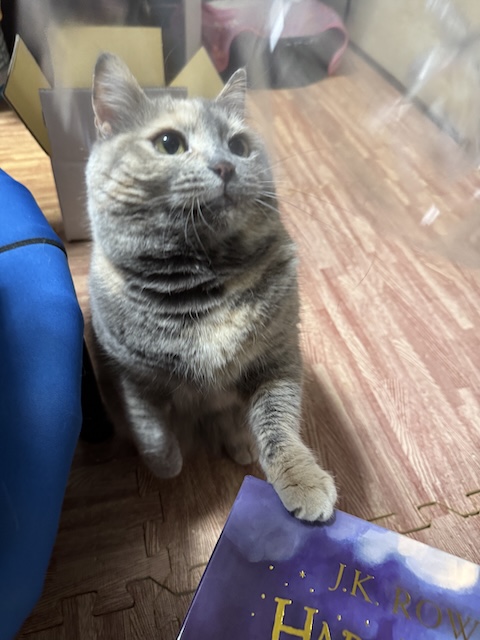 책과의 인증샷을 찍는 중이지만 율무의 시선은 계속 비닐로 ㅎ