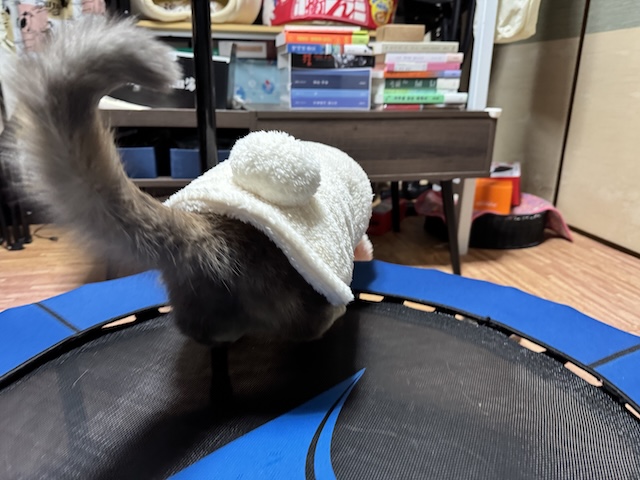 우리 율무 소두라 토끼 모자가 크군요